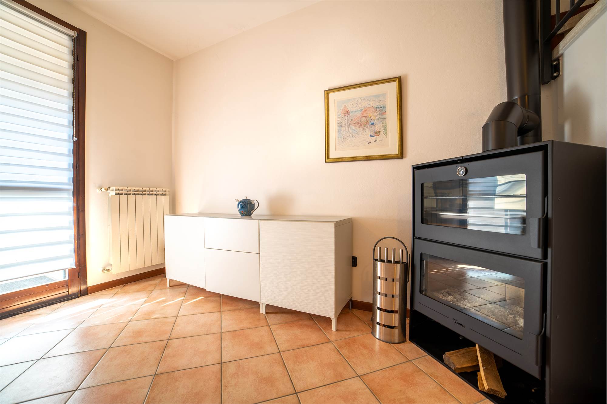 Varcata la soglia, il piano rialzato si apre su un soggiorno luminoso e avvolgente, impreziosito dal calore di una stufa a legna che diventa protagonista delle giornate in famiglia e delle serate di relax. La cucina abitabile, ampia e pratica, si affaccia sul giardino privato: un angolo verde che incontra una zona pavimentata ideale per pranzi all’aperto, piccoli eventi o semplici momenti per respirare tranquillità. Completa il livello un bagno moderno con ampia doccia, pensato per aggiungere comfort alla vita di ogni giorno.