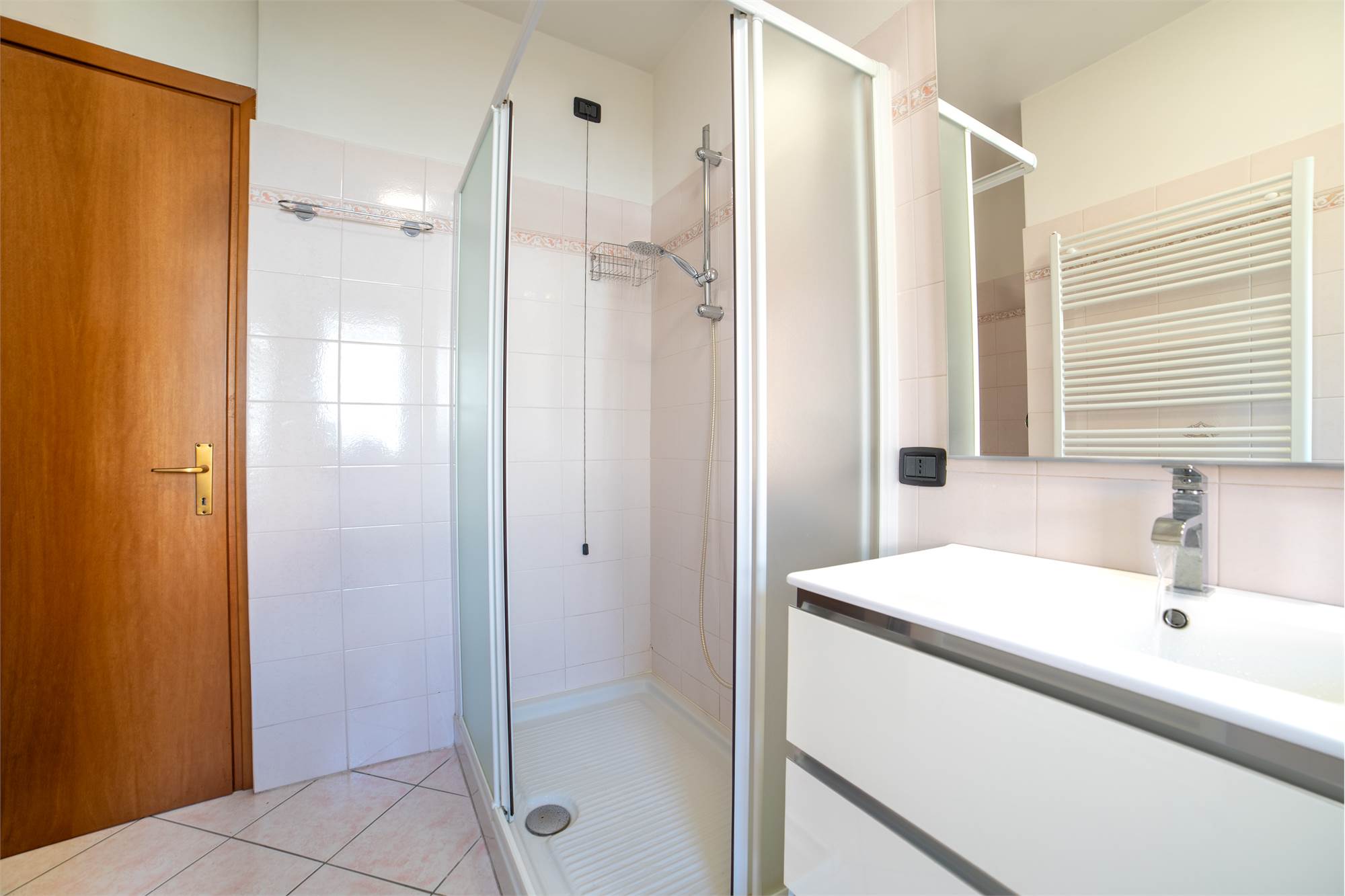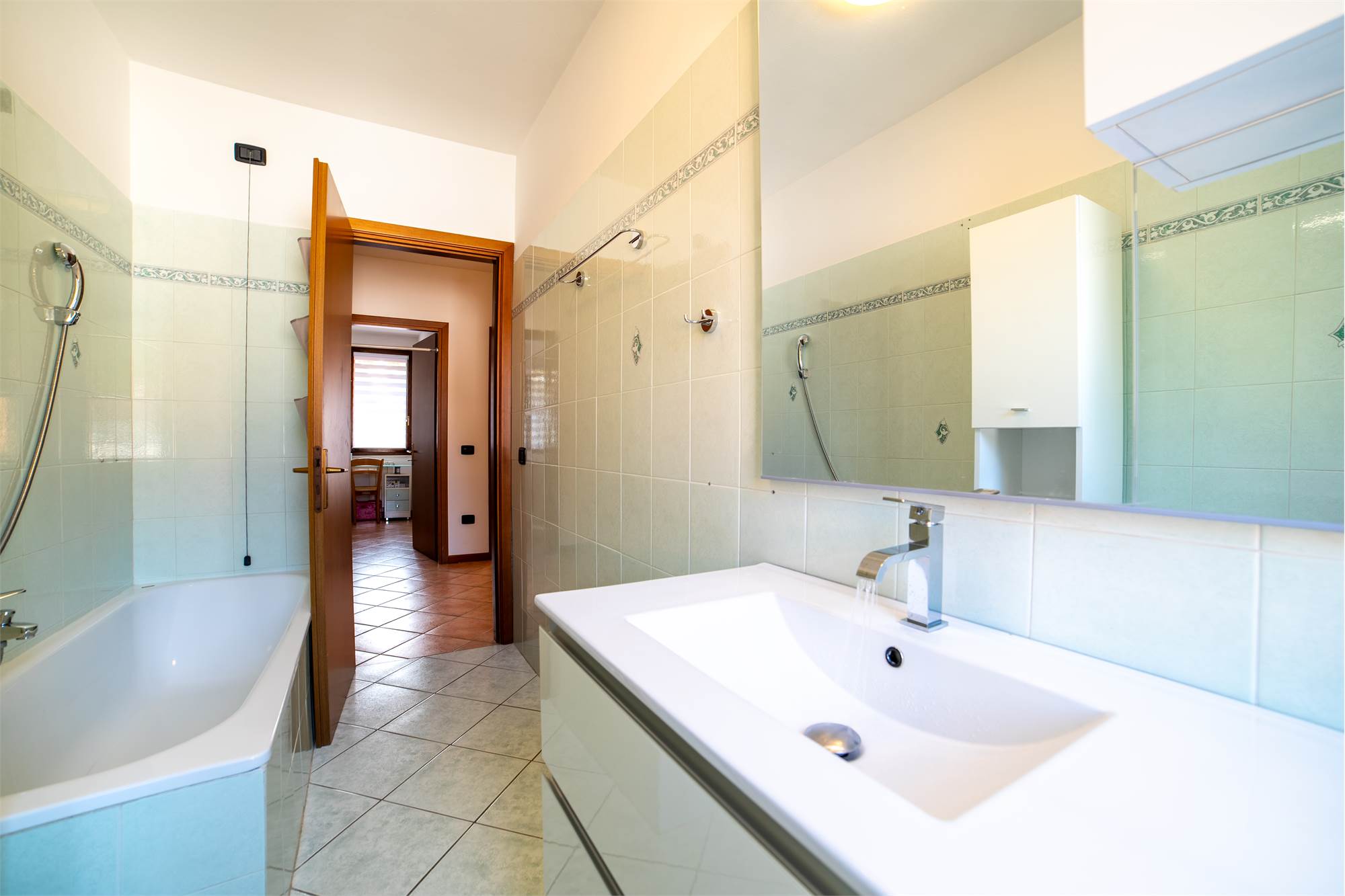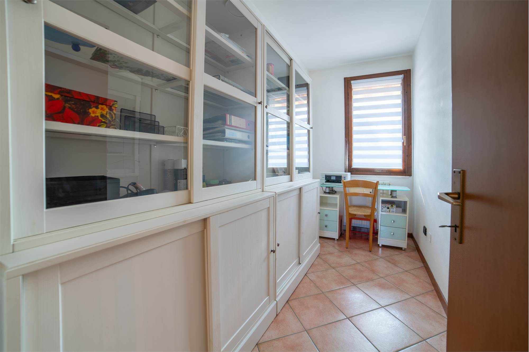 La zona notte, raccolta al piano superiore, offre due camere matrimoniali spaziose — una impreziosita da un balconcino riservato — e uno studio luminoso da interpretare liberamente: perfetto come ufficio, ambiente creativo o cabina armadio. Un secondo bagno con vasca regala un’oasi personale dove rallentare e dedicarsi al proprio benessere.