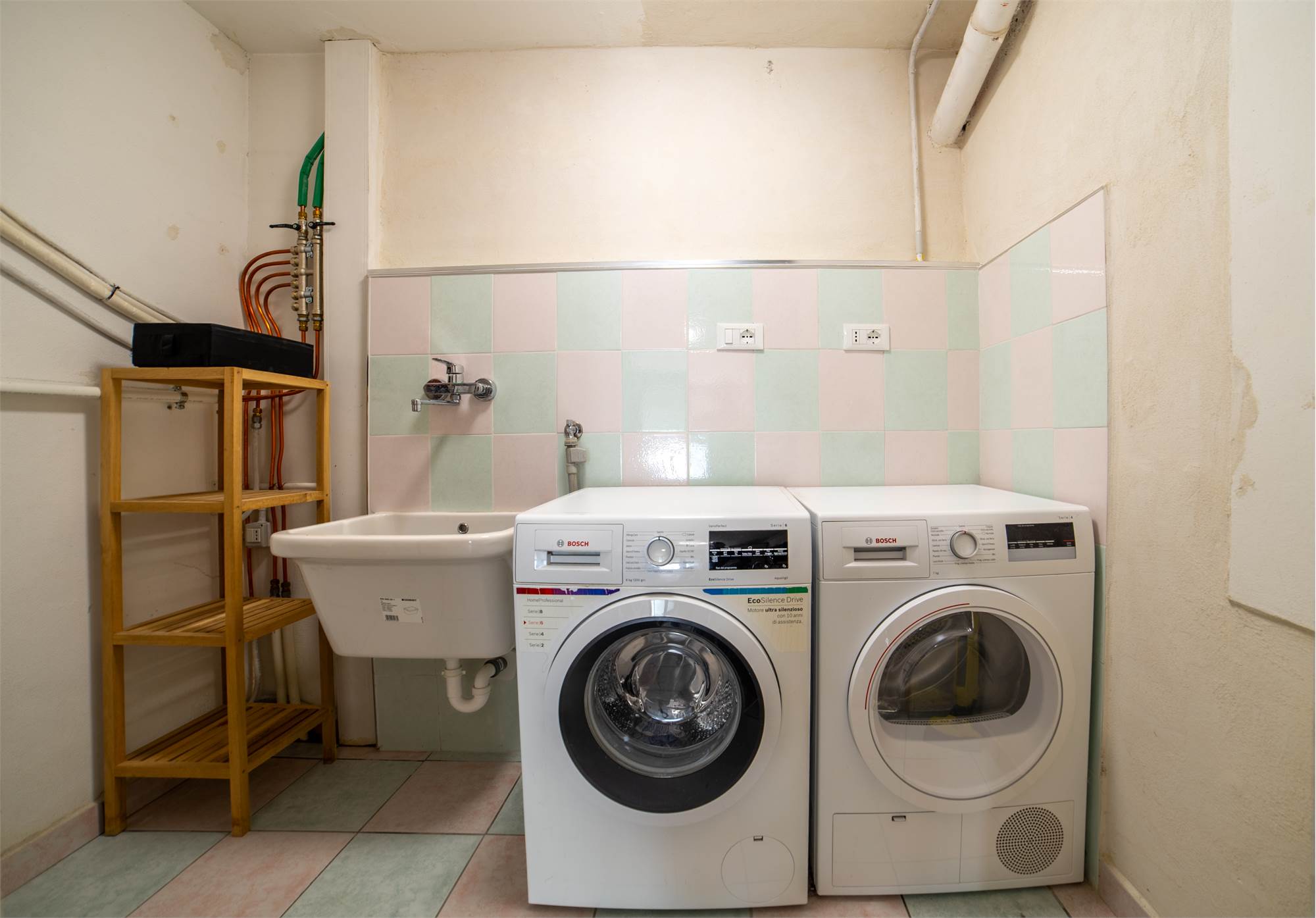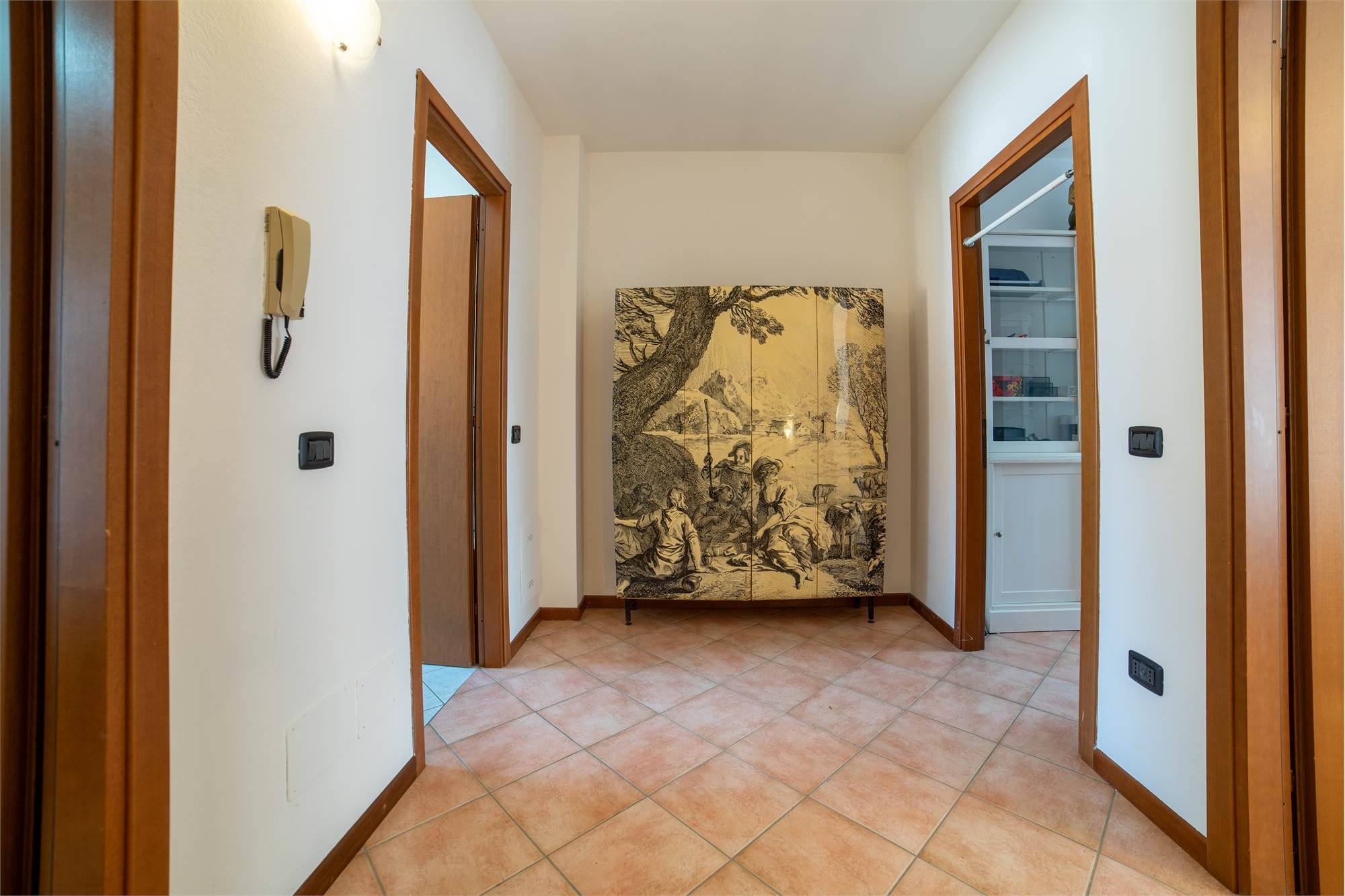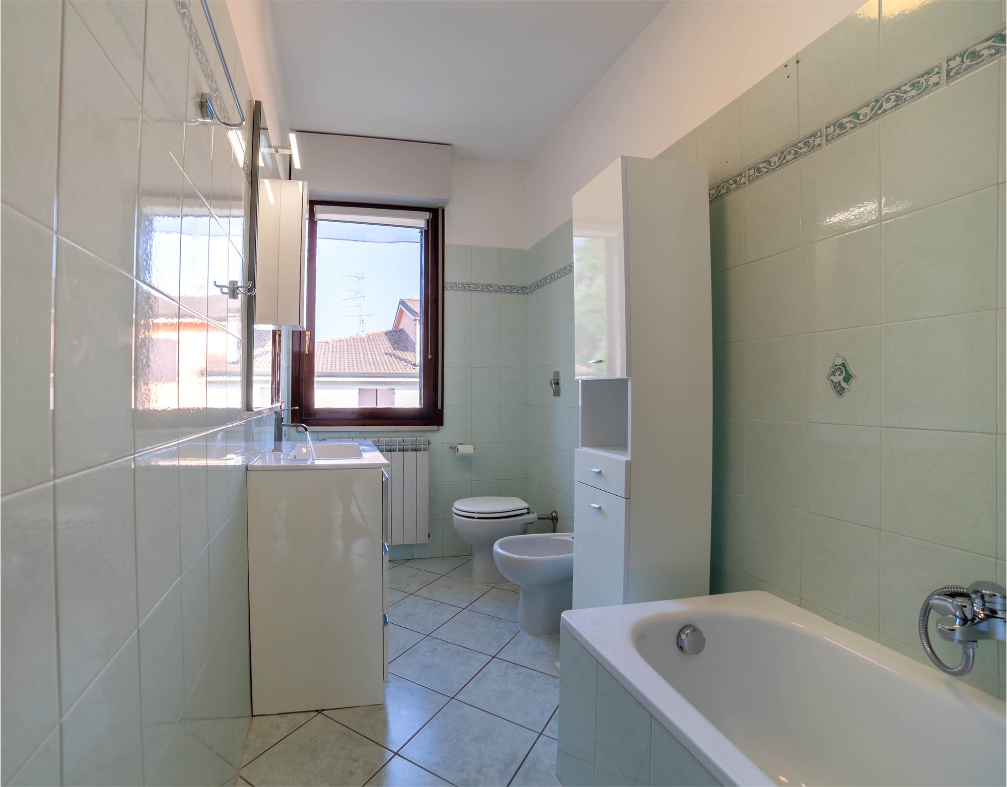 La zona notte, raccolta al piano superiore, offre due camere matrimoniali spaziose — una impreziosita da un balconcino riservato — e uno studio luminoso da interpretare liberamente: perfetto come ufficio, ambiente creativo o cabina armadio. Un secondo bagno con vasca regala un’oasi personale dove rallentare e dedicarsi al proprio benessere.