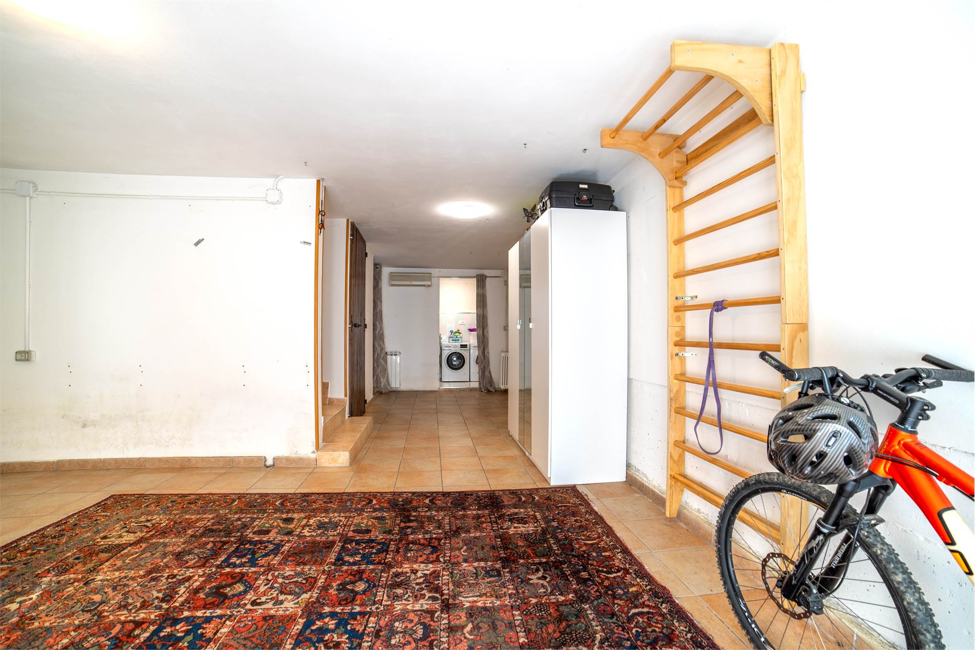 A rendere la casa ancora più interessante è il piano seminterrato: un’autorimessa con grande vetrata che porta luce naturale, trasformabile in palestra, sala giochi o laboratorio; una lavanderia comoda e organizzata; e una stanza aggiuntiva con accesso diretto al giardino, ideale come spazio extra da vivere secondo le proprie esigenze.
