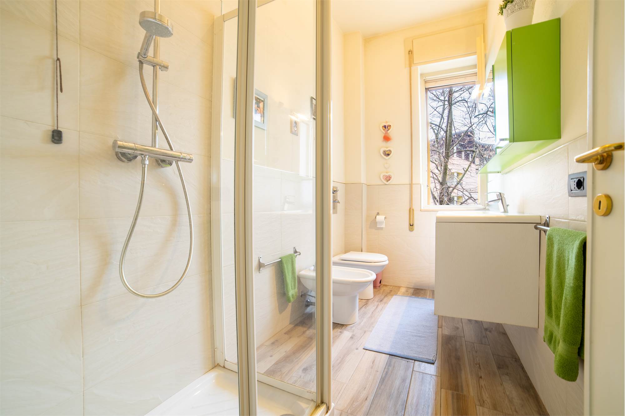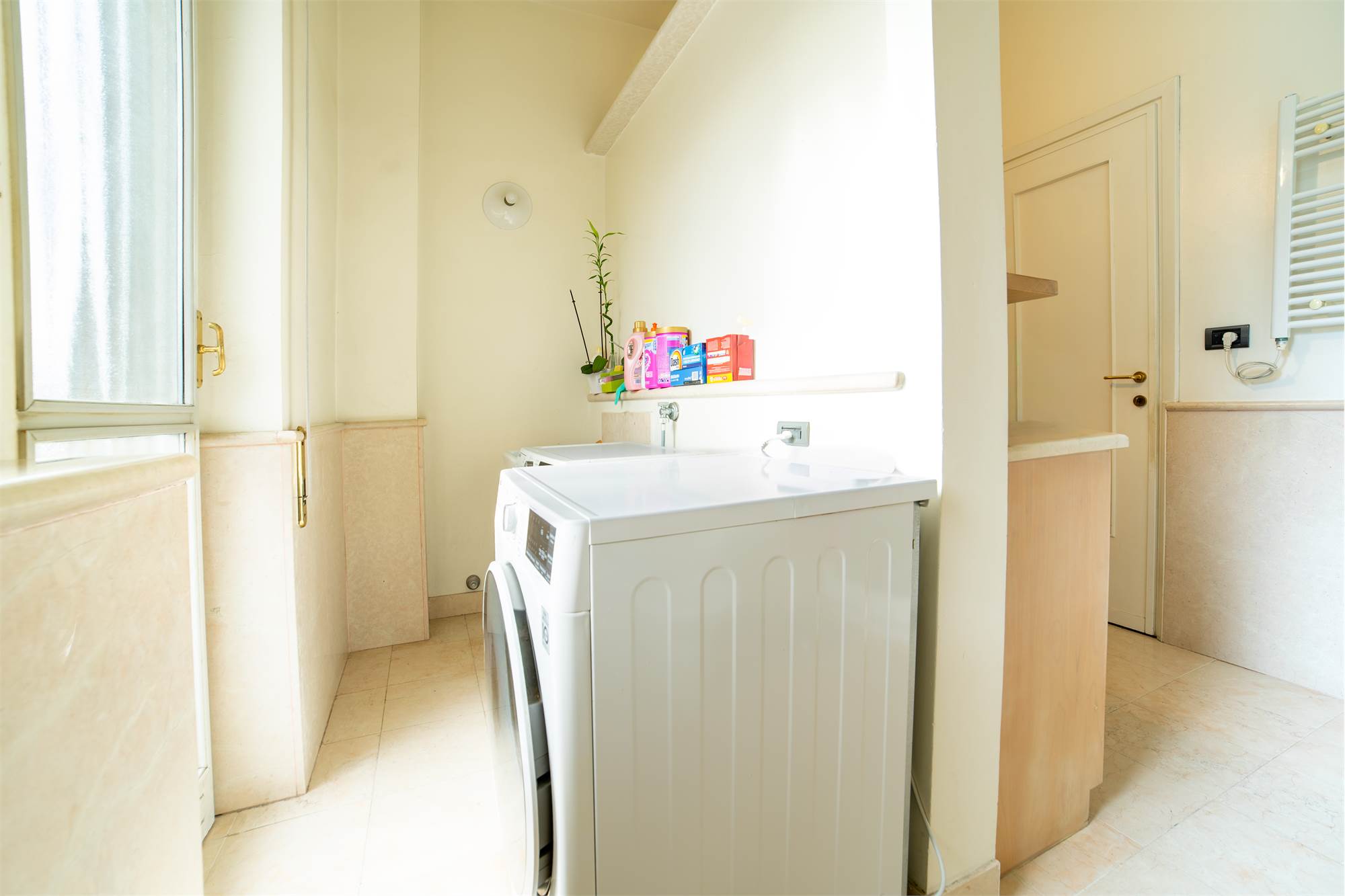 Immagina due bagni funzionali, di cui uno con zona lavanderia collegata al balcone: non sarebbe pratico avere tutto a portata di mano?
