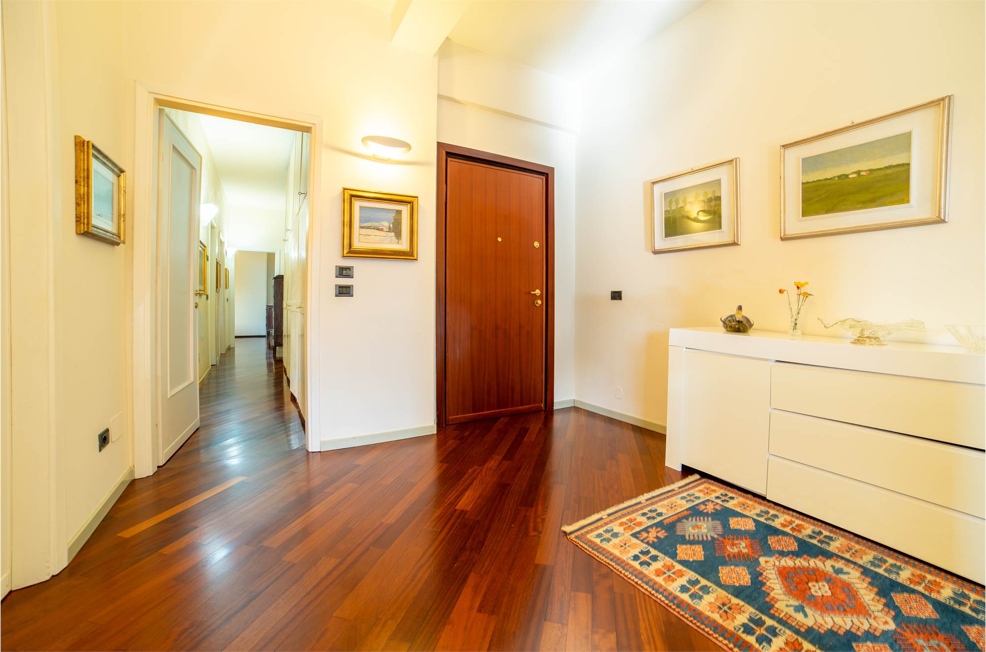Quattro balconi ti permettono di godere di spazio all’aperto in ogni momento della giornata, mentre l'elegante parquet, il riscaldamento a pavimento, le due cantine e il posto auto in garage chiuso condominiale garantiscono stile e comodità in ogni angolo.