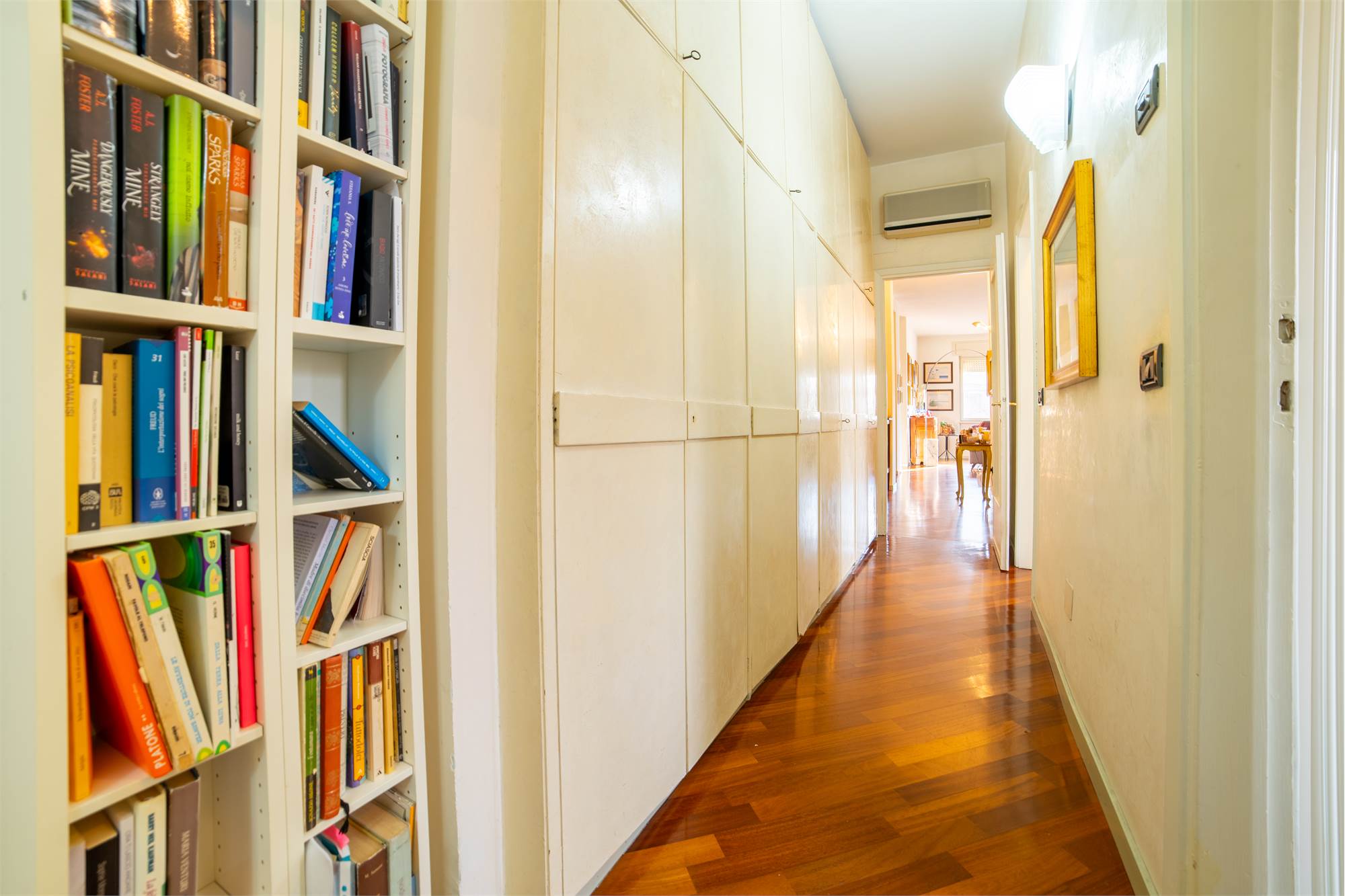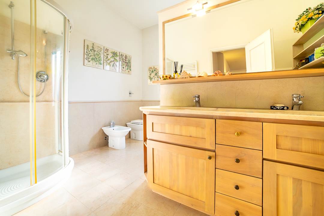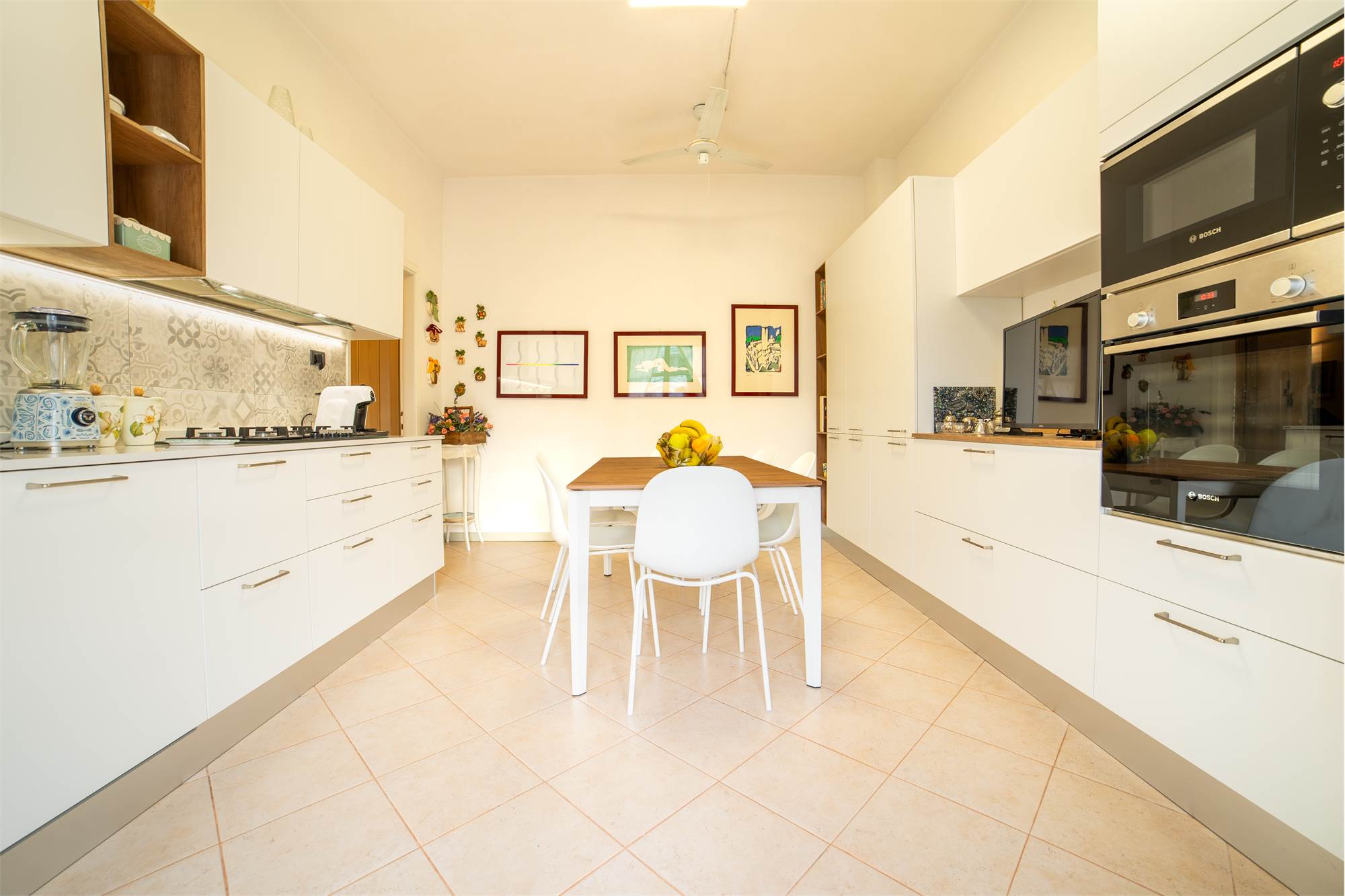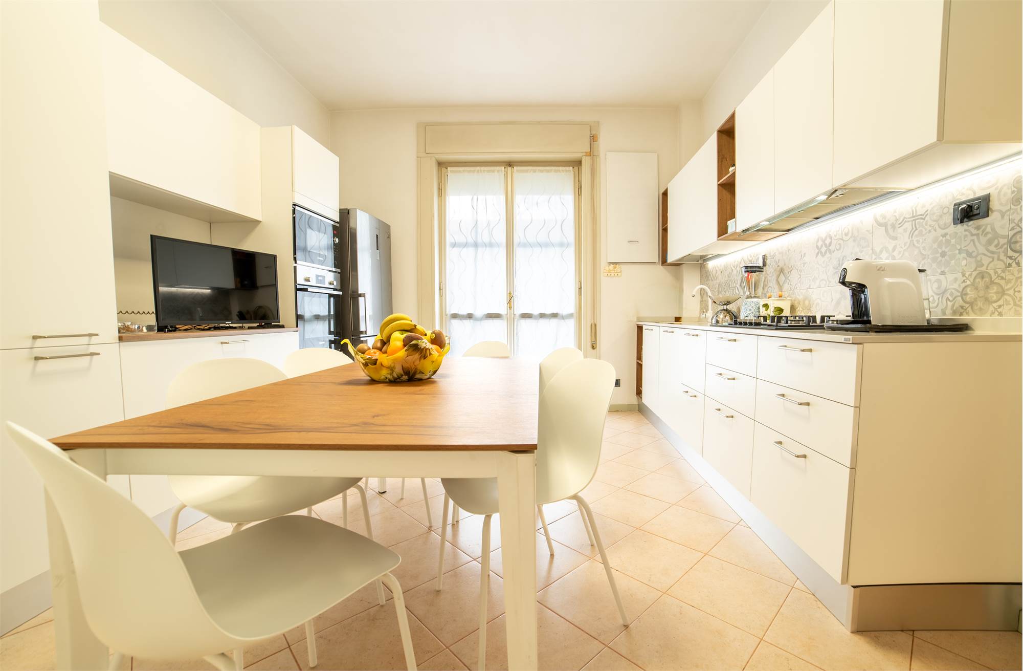 La cucina è abitabile, moderna e ben organizzata, con accesso diretto al balcone dotato di funzionale tenda elettrica, un plus particolarmente ricercato.