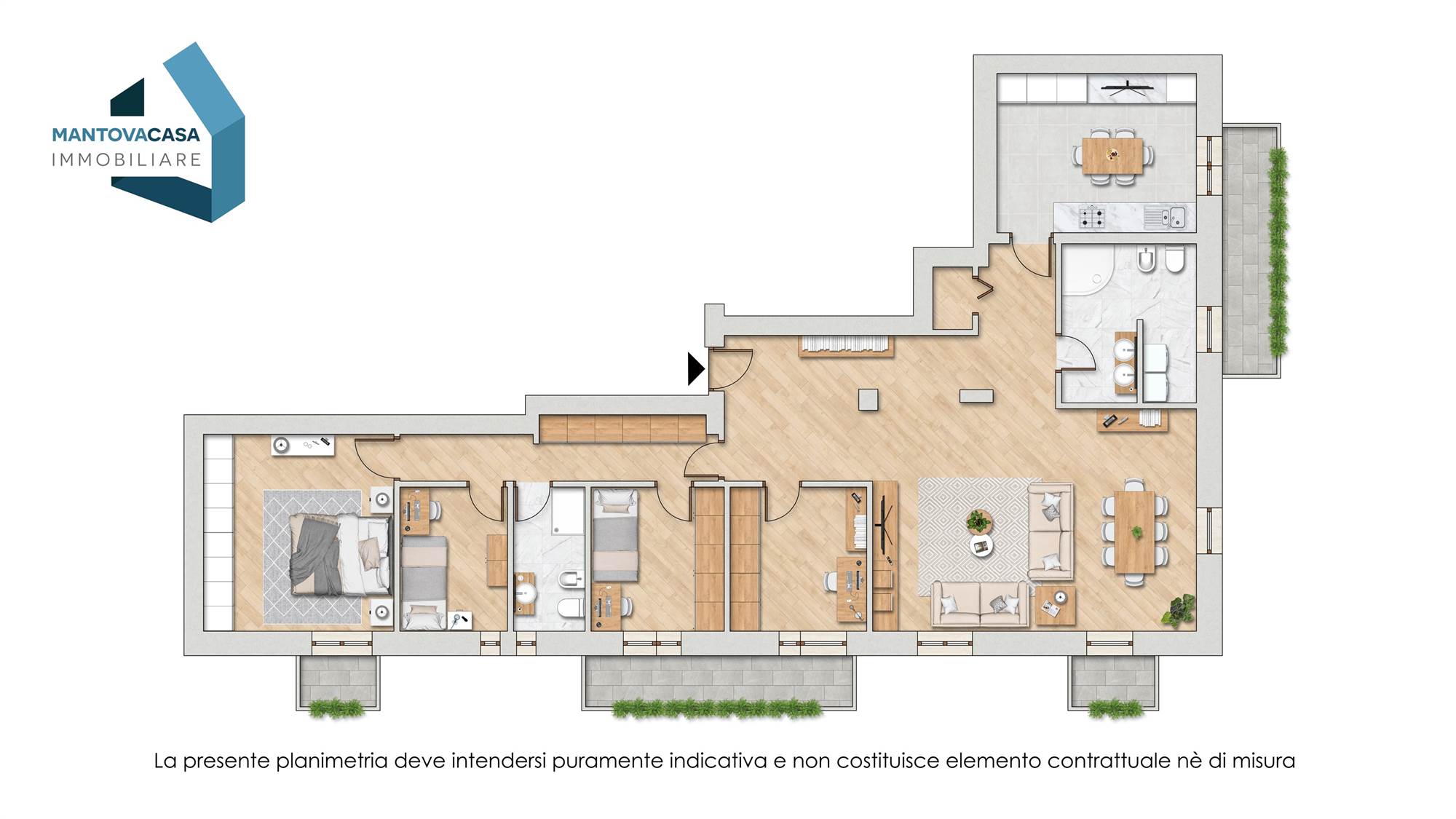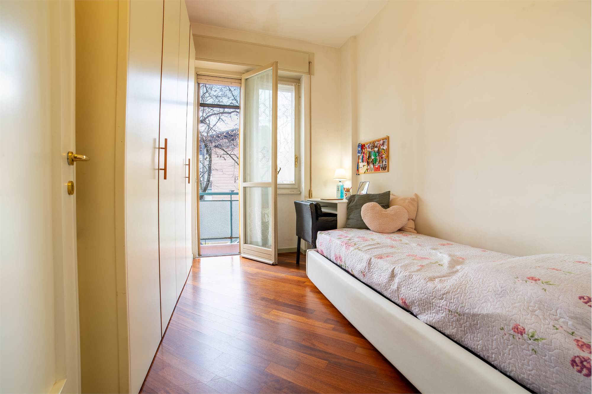 Quattro balconi ti permettono di godere di spazio all’aperto in ogni momento della giornata, mentre l'elegante parquet, il riscaldamento a pavimento, le due cantine e il posto auto in garage chiuso condominiale garantiscono stile e comodità in ogni angolo.