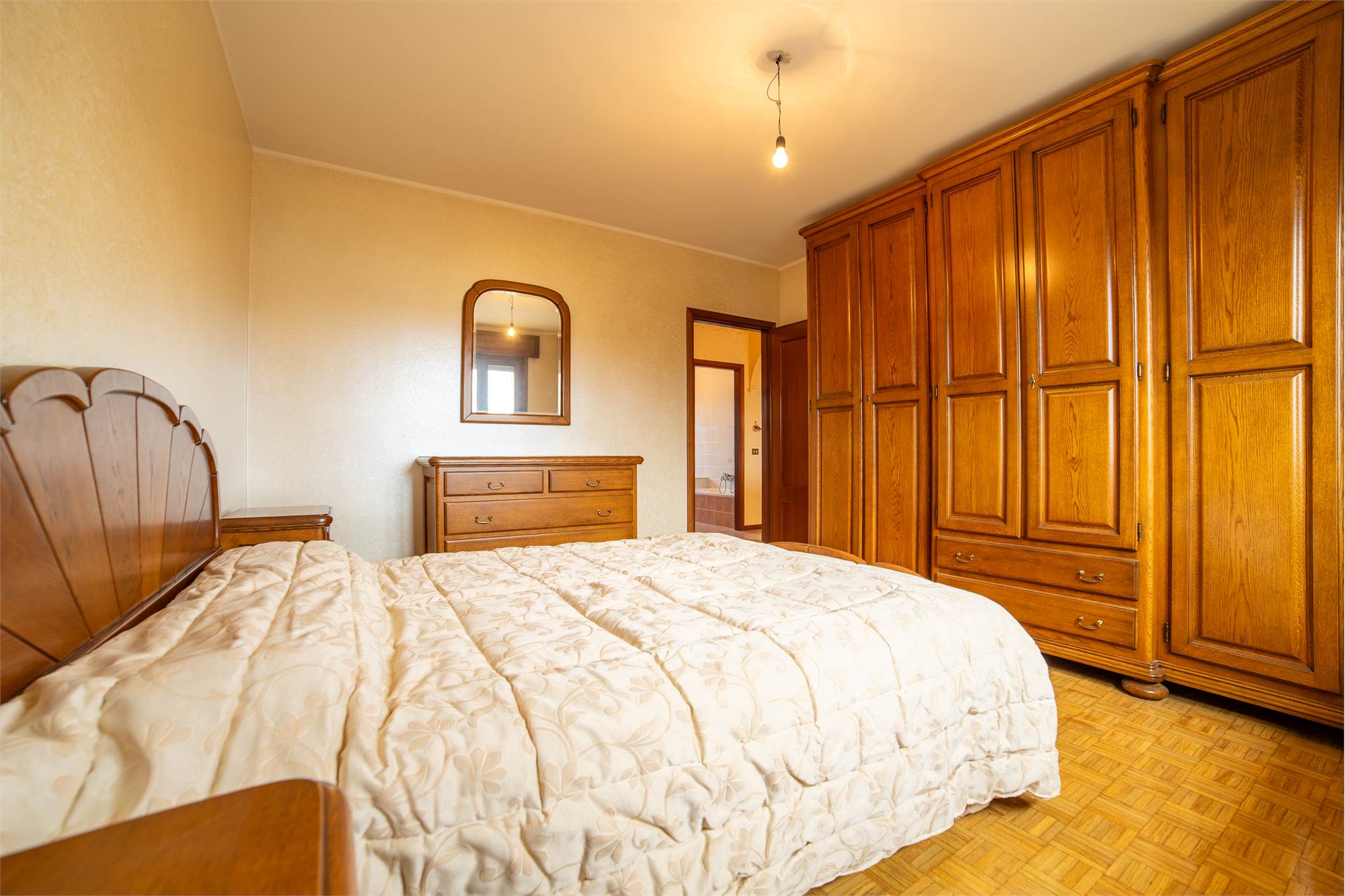 La zona notte offre due camere matrimoniali di generose dimensioni, ideali per una famiglia o per chi desidera una stanza in più da dedicare a studio o hobby. Completa il piano un bagno finestrato con vasca e un comodo ripostiglio, sempre prezioso per mantenere ordine e funzionalità.